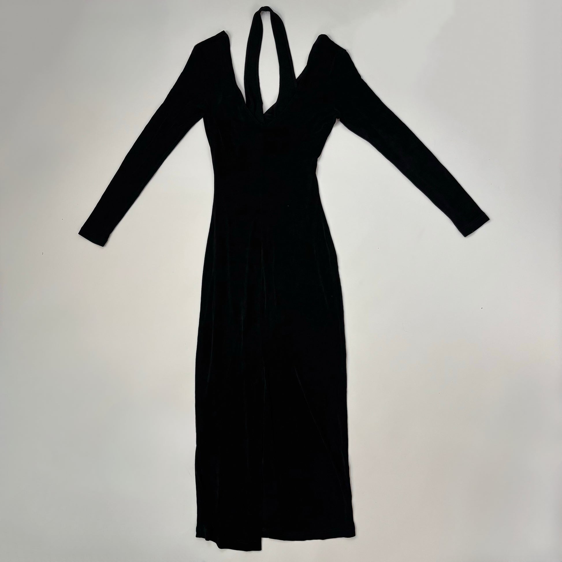 Vintage Maxi Slinky Black Dress - S/M